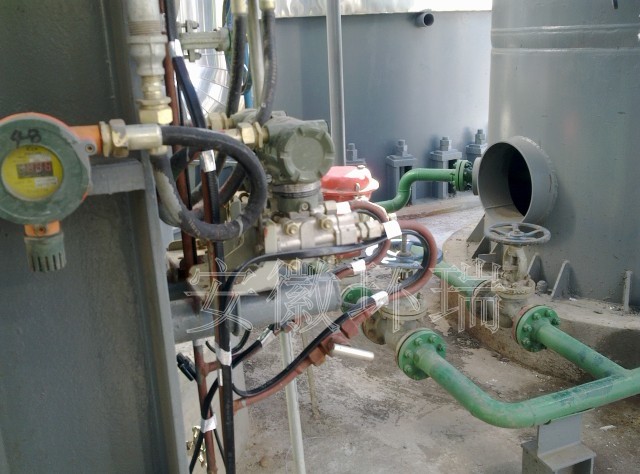 壓力變送器液位計(jì)常應(yīng)氣候溫度過低,造成堵塞現(xiàn)象,需要電伴熱防凍,渝豐化工要求其冬季維持溫度為5--10℃,并且要求電伴熱帶具有防爆防腐功能。安徽環(huán)瑞提供ZRDHR-PF46滿足客戶對(duì)使用場(chǎng)合及維持溫度要求,其最高表面溫度為70℃,耐溫可達(dá)200℃??杀WC維持溫度的情況下,不會(huì)出現(xiàn)溫度過高的情況,更加經(jīng)濟(jì)安全,而針對(duì)現(xiàn)場(chǎng)細(xì)長(zhǎng)狹窄的地方自限溫電熱帶可實(shí)現(xiàn)交叉纏繞,解決局部伴熱的問題。以下為現(xiàn)場(chǎng)施工安裝圖: