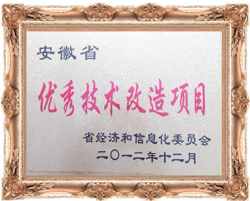 祝賀安徽環(huán)瑞獲得2012年度安徽技術(shù)改造優(yōu)秀項(xiàng)目