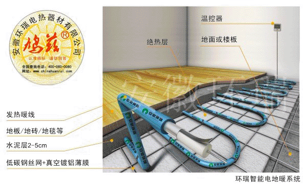 電地暖利用發(fā)熱電纜轉(zhuǎn)化為熱能,通過地表傳熱由下之上的地面輻射供暖系統(tǒng) 安徽環(huán)瑞電地暖廠家銷售電話:0551-67776888,傾力十年打造中國安全型電地暖品牌
