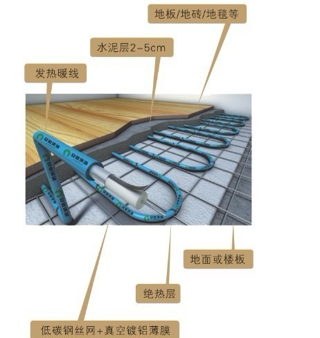 地面供暖 將加熱電纜鋪設(shè)于水泥地下,實(shí)現(xiàn)以下往上的供熱。具體鋪設(shè)方式為;