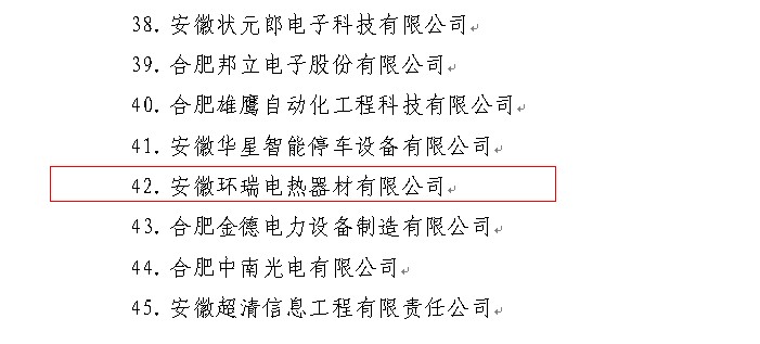 科技小巨人培育企業(yè)是針對有一定生產(chǎn)規(guī)模與研發(fā)能力,并且取得一定量的科研成果的企業(yè)。企業(yè)入選資格需經(jīng)過經(jīng)組織申報,縣區(qū)推薦、篩選等環(huán)節(jié)。安徽環(huán)瑞憑借多年電伴熱帶、發(fā)熱電纜生產(chǎn)技術(shù)研發(fā)獲得了市政府的重視,入選成功。以下為合肥科技局網(wǎng)通知公司內(nèi)容: