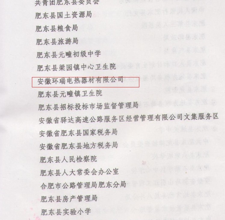 安徽環(huán)瑞電熱器材有限公司有幸成為其中的一員,我們將再接再厲,發(fā)揚成績,為推進社會主義物資文明,政治文明,精神文明和生態(tài)文明建設(shè),構(gòu)建和諧社會的偉大實踐中更好的發(fā)揮示范帶頭作用。做出新的更大的貢獻。提供思想保障,精神動力和智力支持。