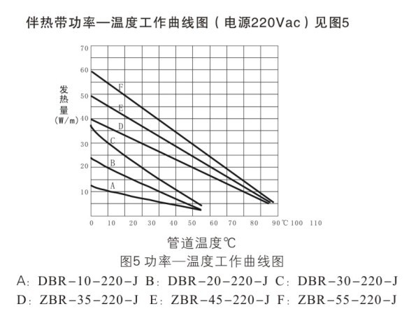 確定和選擇電熱帶的輸出功率,不是以標(biāo)稱功率為依據(jù),而是一系統(tǒng)維持溫度時(shí)電熱帶必須輸出的功率為依據(jù)。所選的電熱帶的功率,即使在最惡劣的條件下(如最低氣溫,最大風(fēng)度),應(yīng)仍能補(bǔ)償設(shè)備和管道的熱損失,使維持溫度不致降低。根據(jù)計(jì)算的得出的管道每米熱損失值在功率-溫度曲線上查出管道維持溫度時(shí)電熱帶的功率,以確定合適的電熱帶規(guī)格。